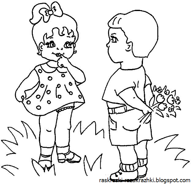 ![Рисунки для срисовки лёгкие мальчик и девочка]()