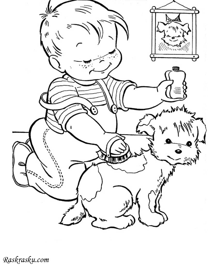 ![Раскраска человек с собакой]()