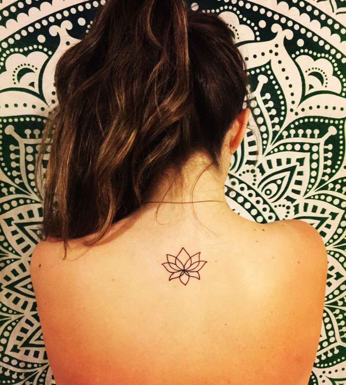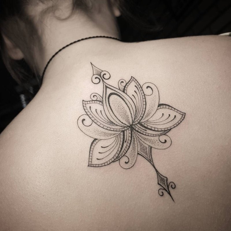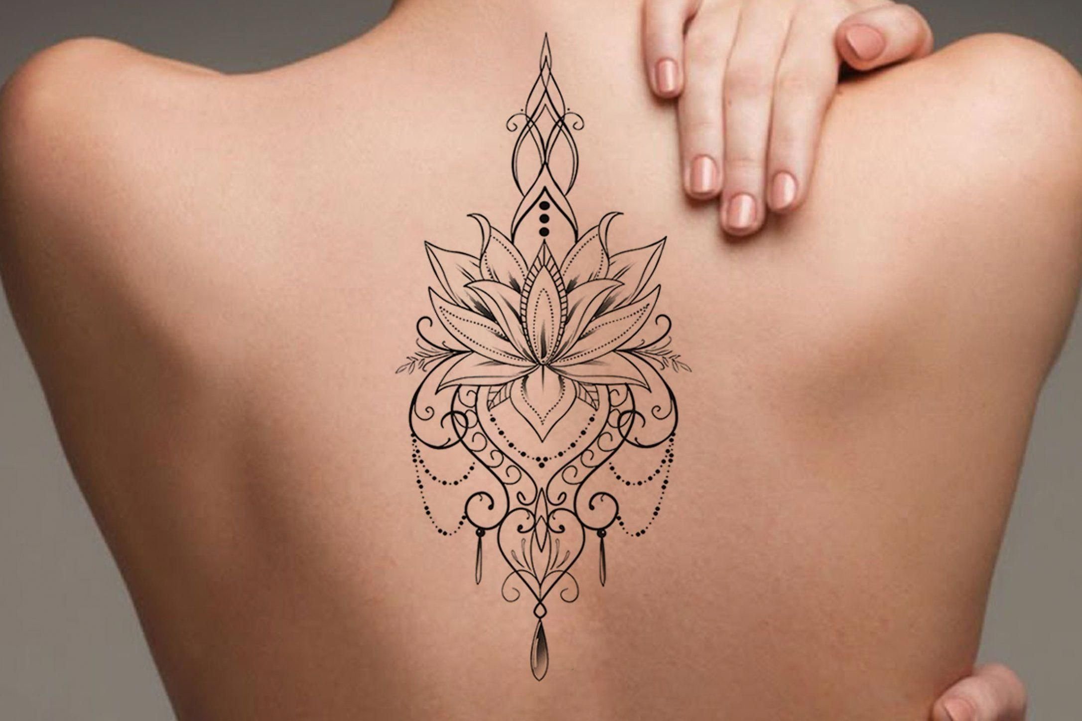 Тату Мандала Лотос на спине для девушек