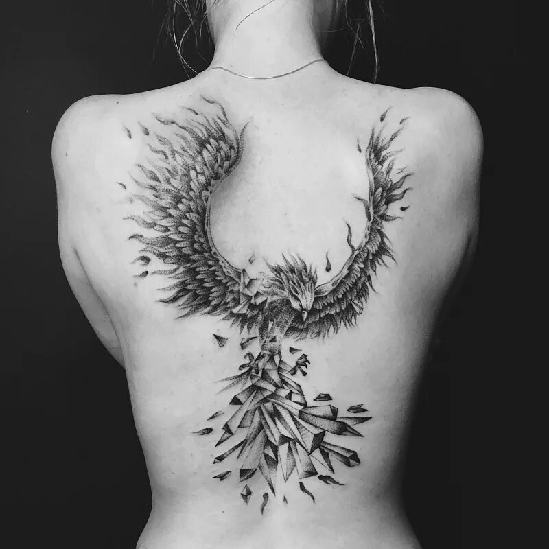 Тату птицы на спине
