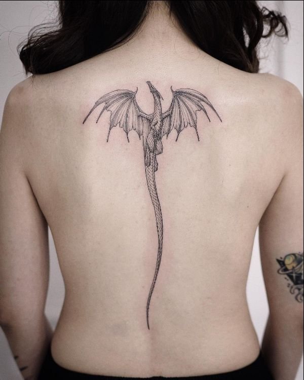 Тату дракон на спине маленький