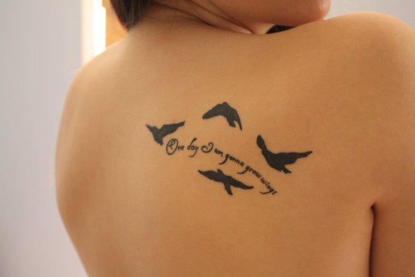 Тату стая птиц на лопатке
