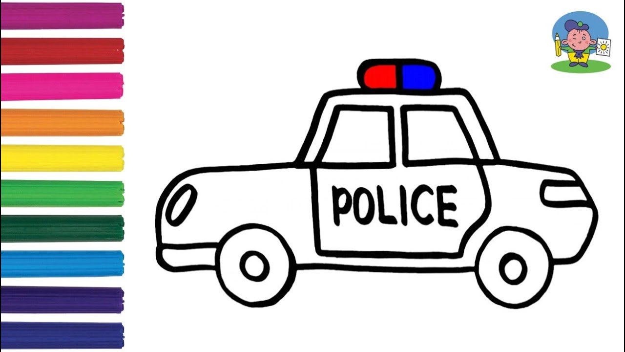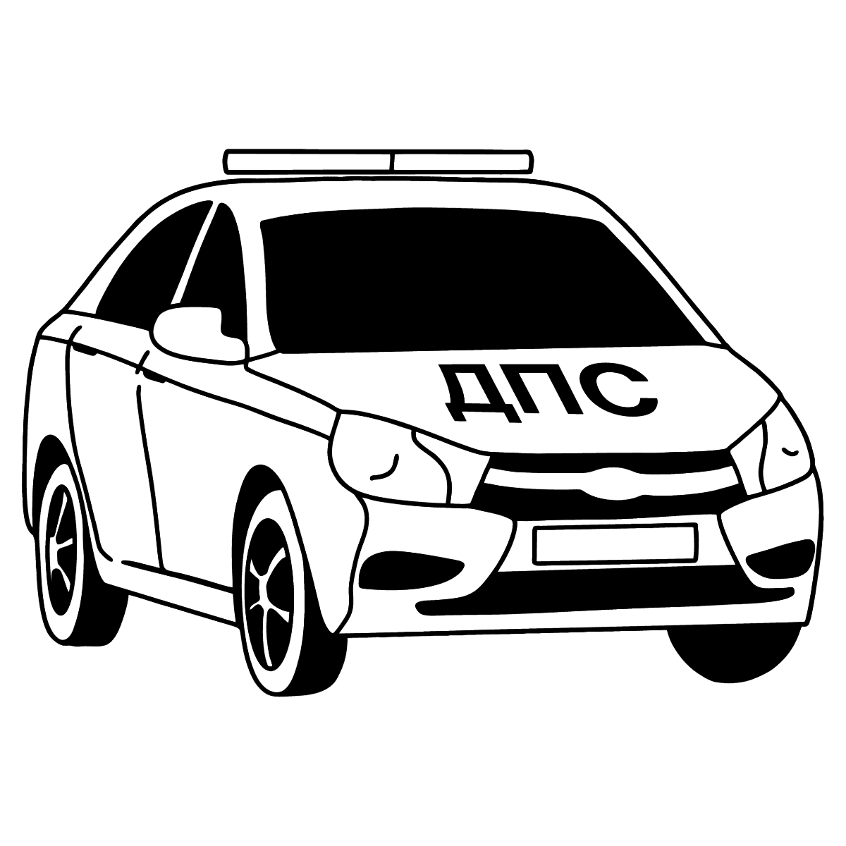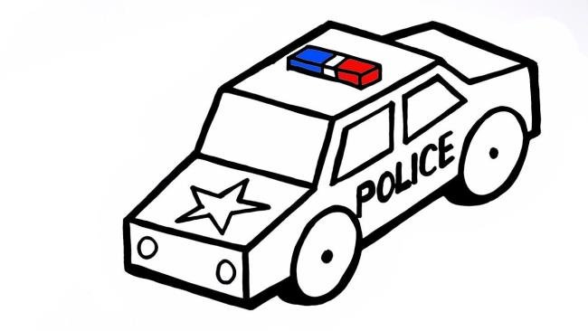 ![Раскраска Полицейская машина с мигалкой сбоку]()