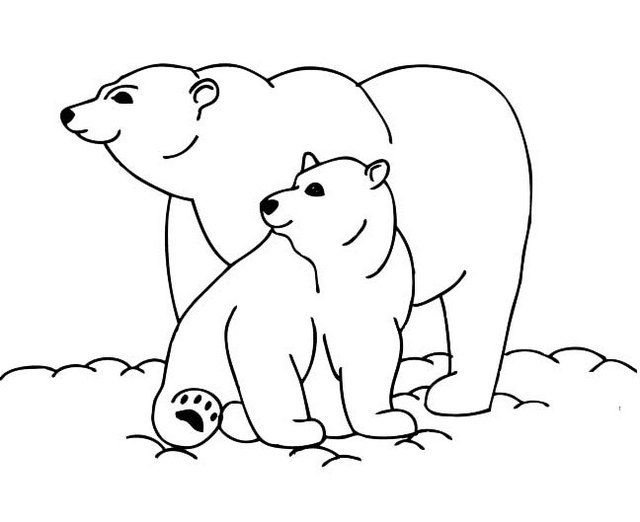 Белая Медведица с медвежонком раскраска