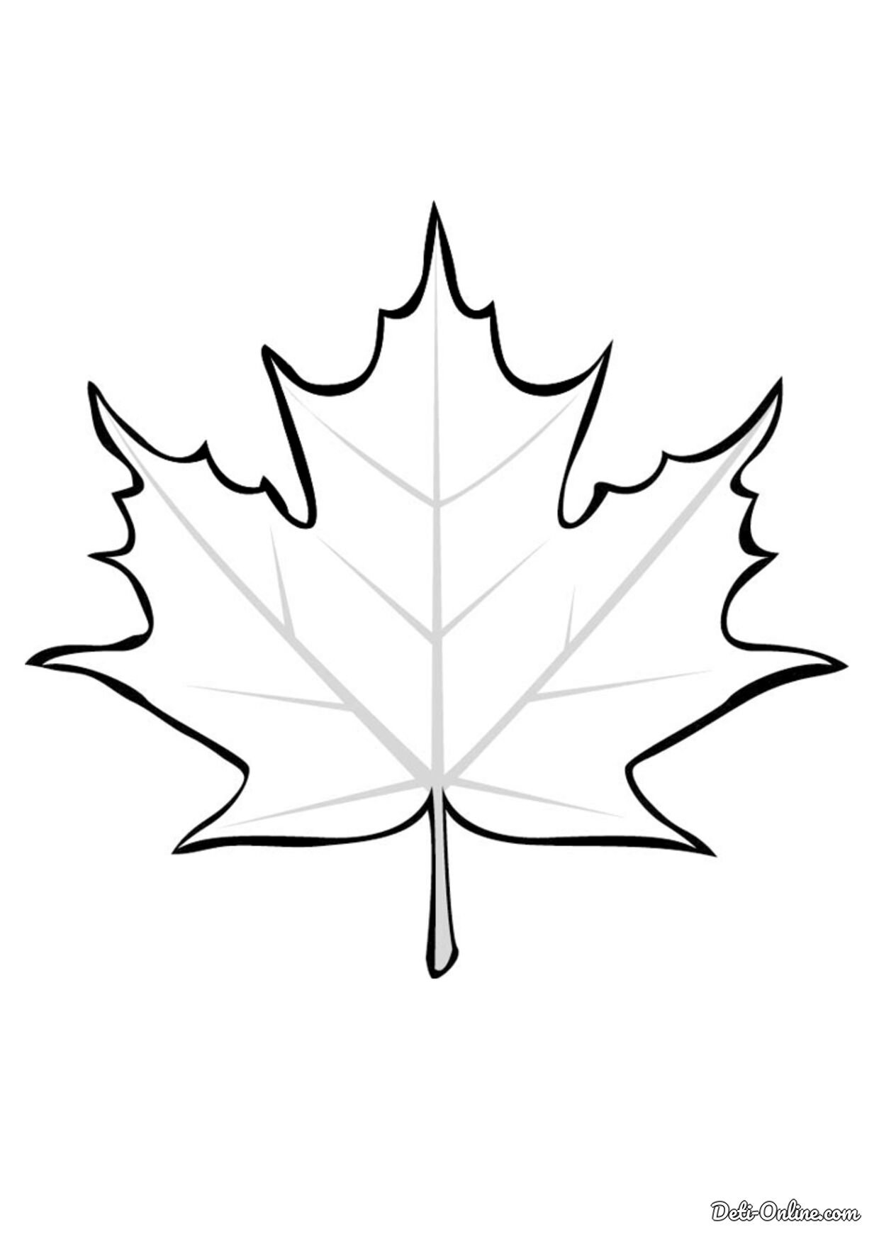 ![Кленовый лист раскраска]()