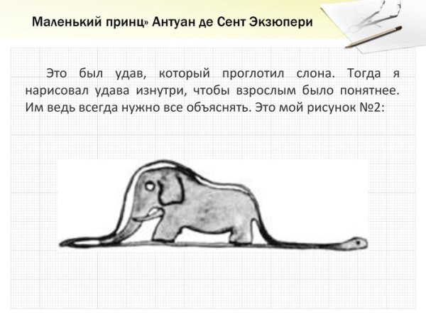 ![Рисунок маленького принца удав проглотивший слона (46 фото)]()