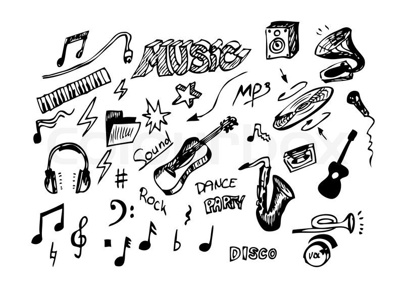 ![Нарисованные вещи связанные с музыкой]()