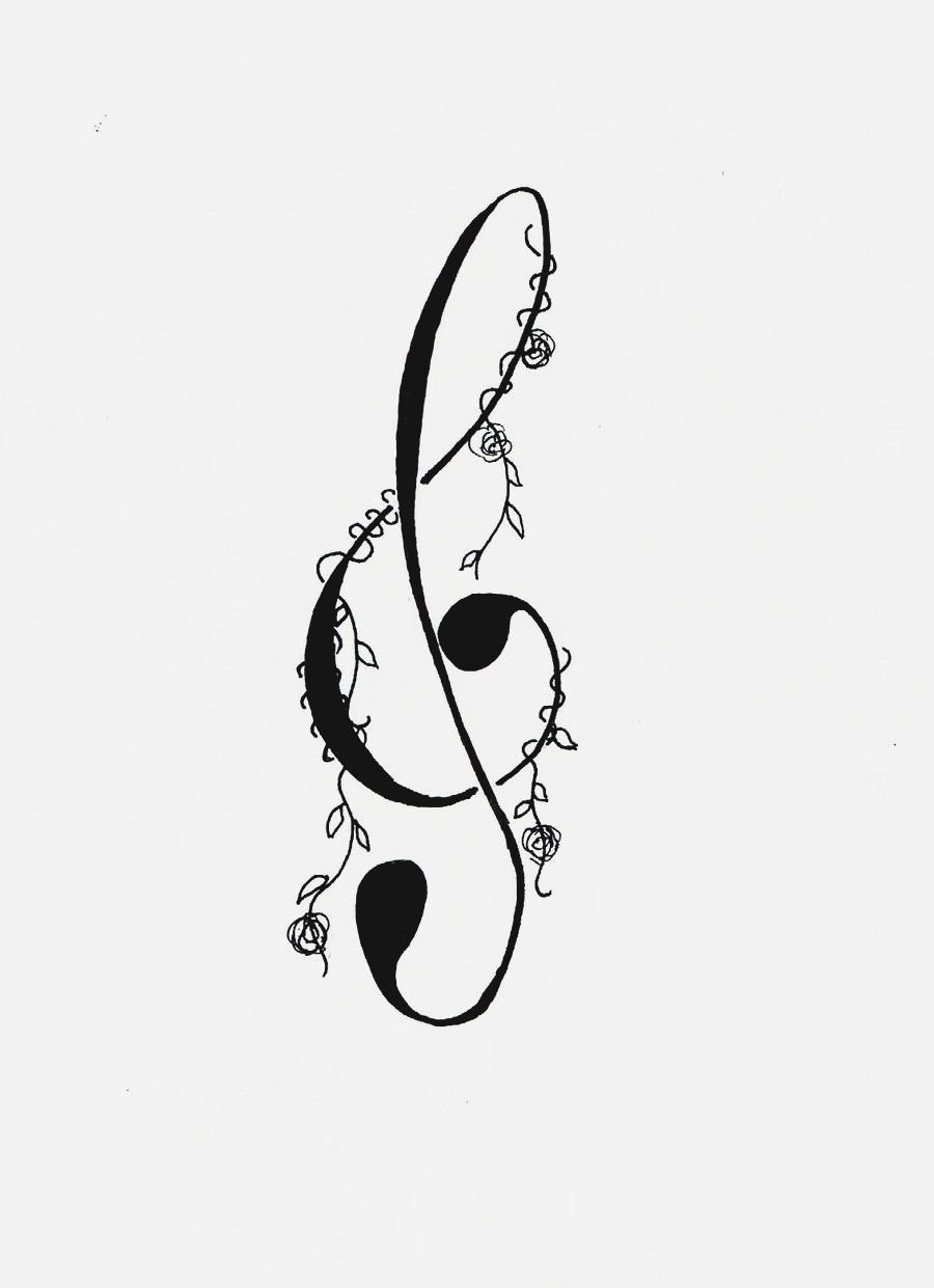 ![Тату скрипичный ключ эскиз]()