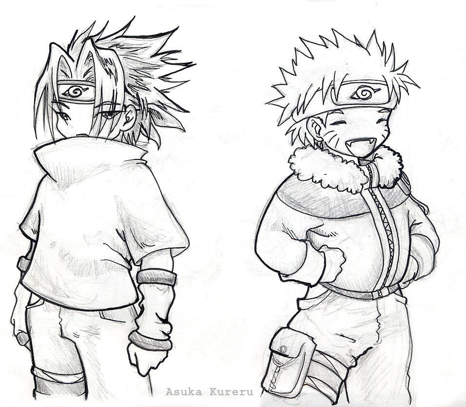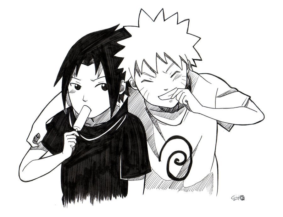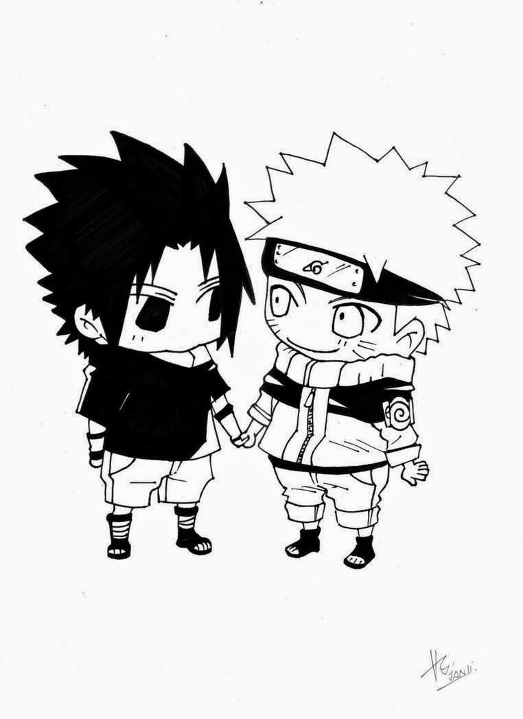 ![Наруто и Саске маленькие черно-белые]()