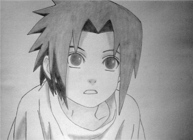 ![Рисунки карандашом аниме Саске]()