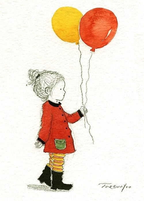 ![Эскизы девочке с шарами]()
