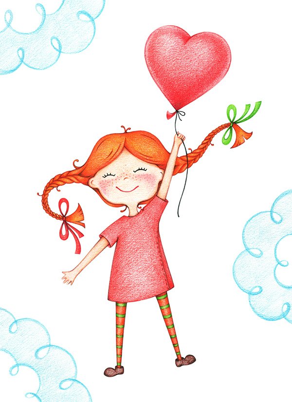 ![Нарисованная девочка с воздушным шариком]()
