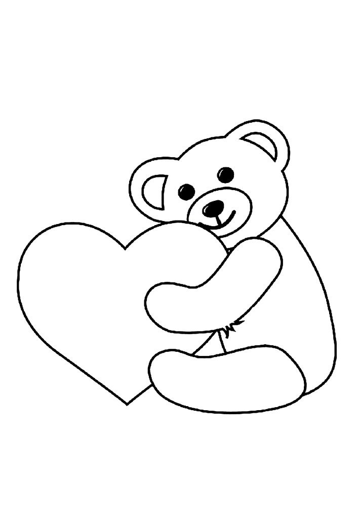 Мишка с сердечком для срисовки