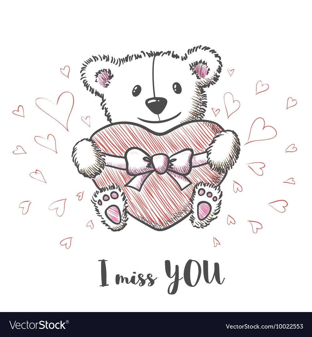 ![Красивый мишка с сердечком рисунок]()