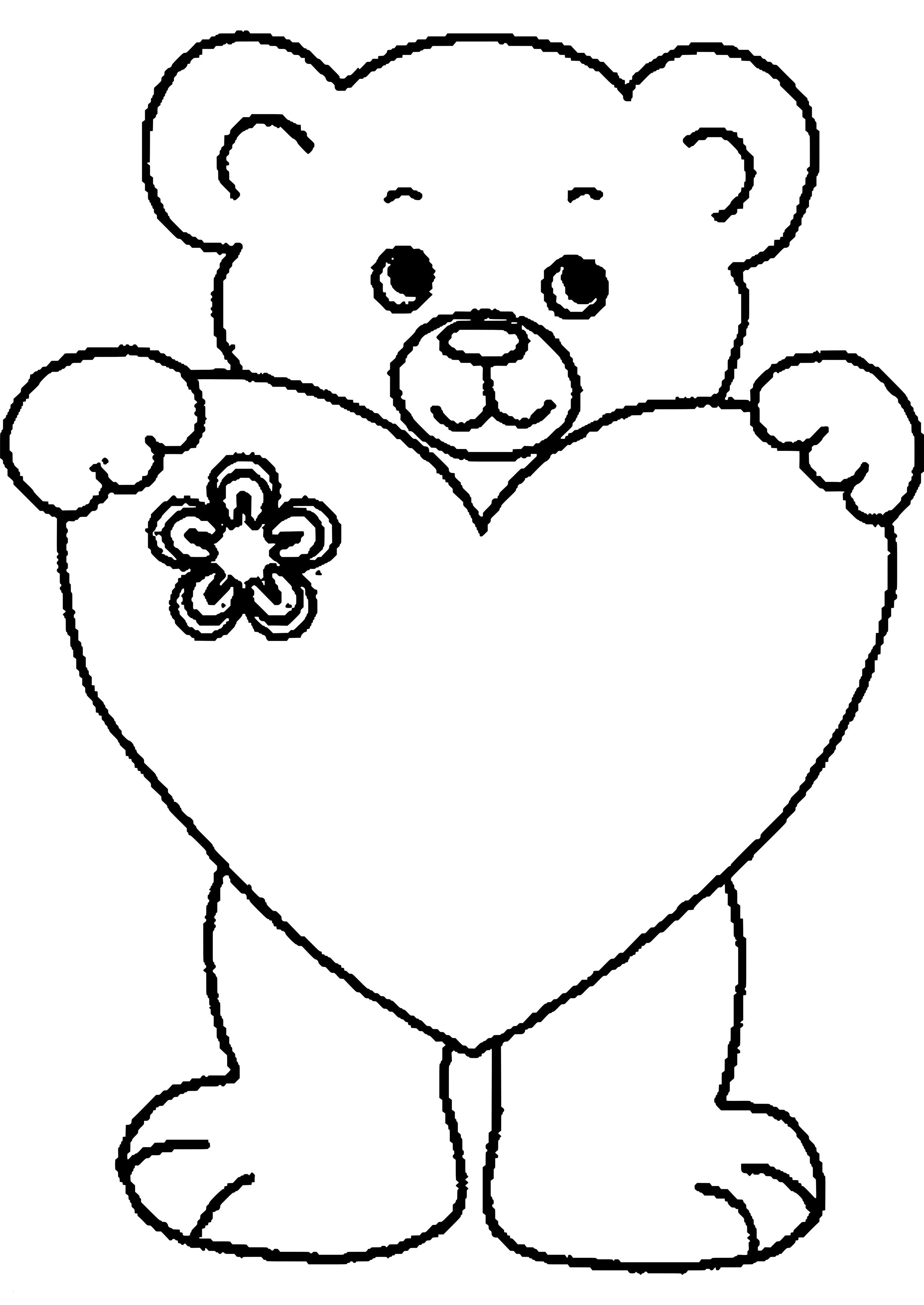 ![Мишка с сердечком для срисовки]()