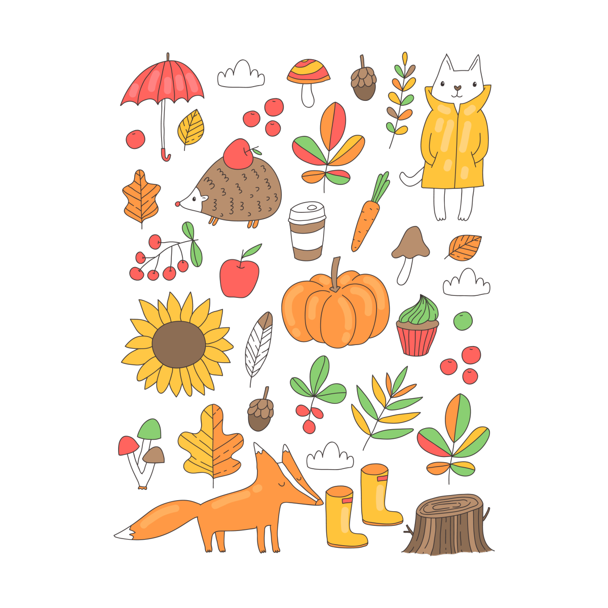 ![Осенние рисунки для наклеек]()