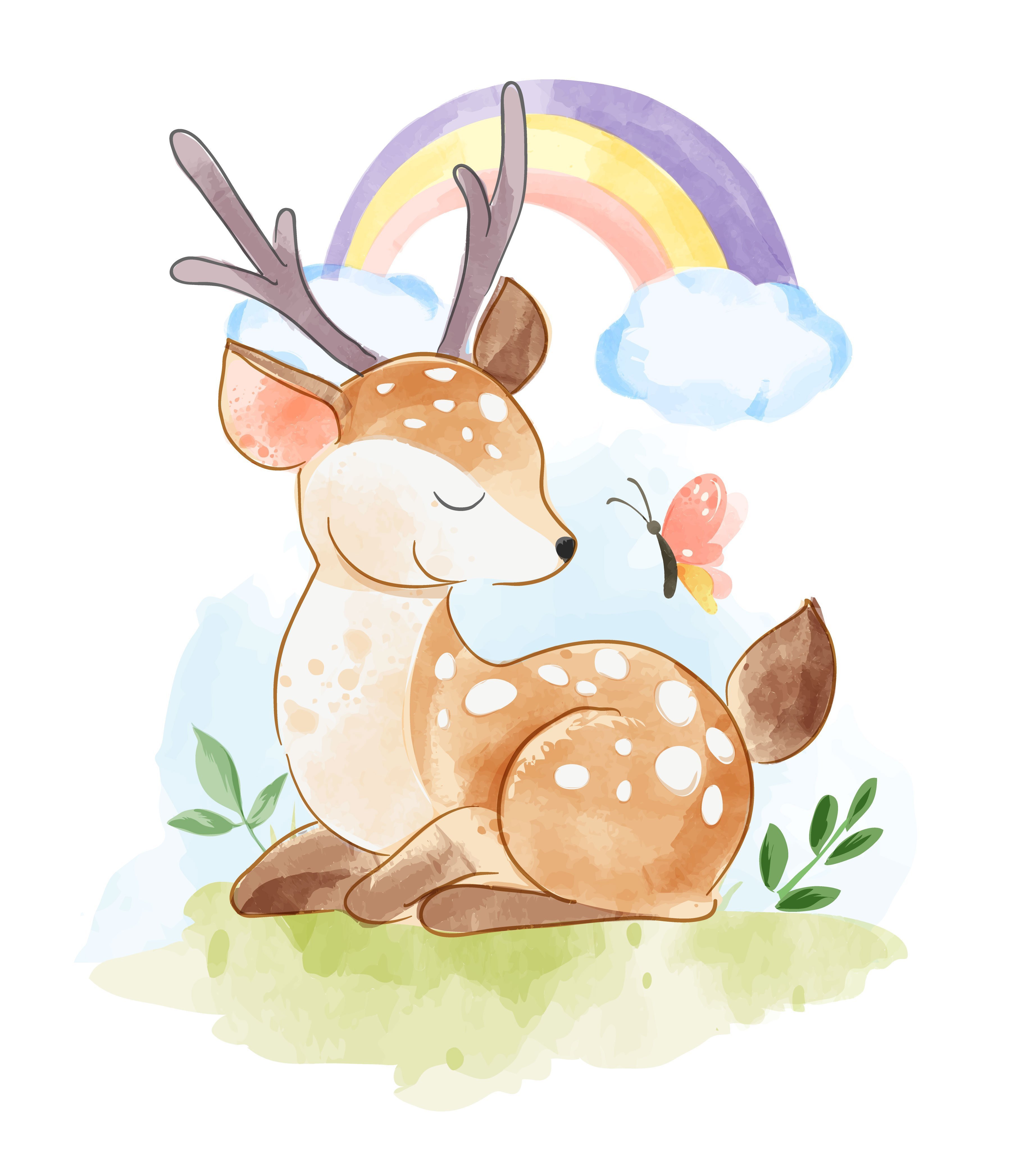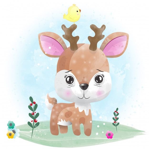 ![Маленький олень акварель]()