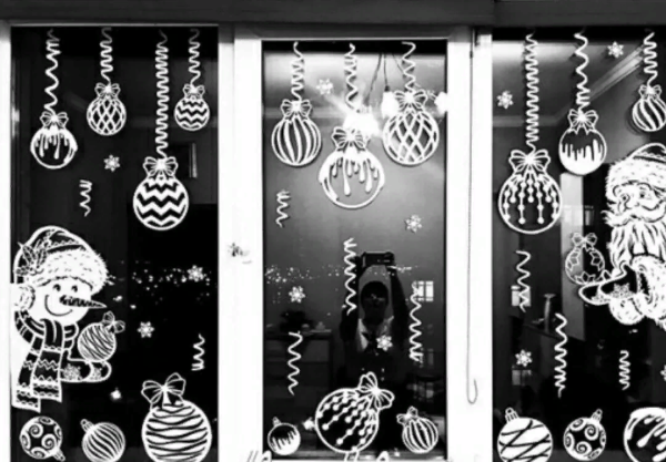 ![Маленькие новогодние рисунки на окнах (48 фото)]()