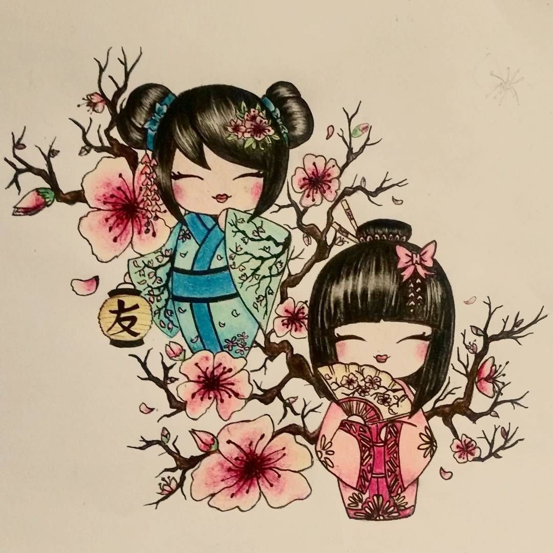 ![Японская кукла кокэси рисунок]()