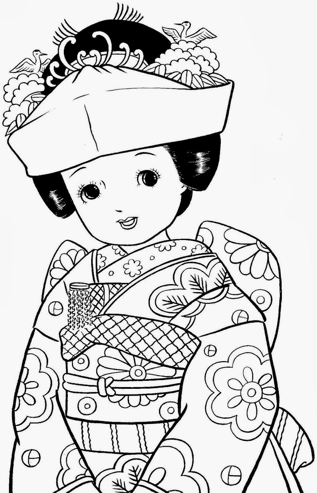 ![Японское кимоно раскраска]()