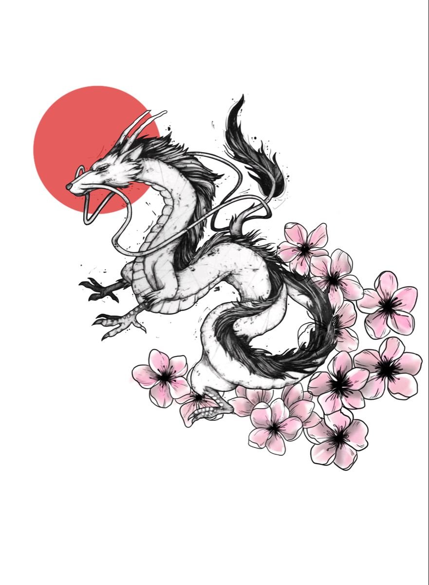 ![Дракон тату эскиз цветной]()