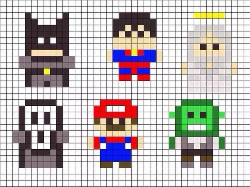 рисунки по клеткам маленькие супергерои для срисовки