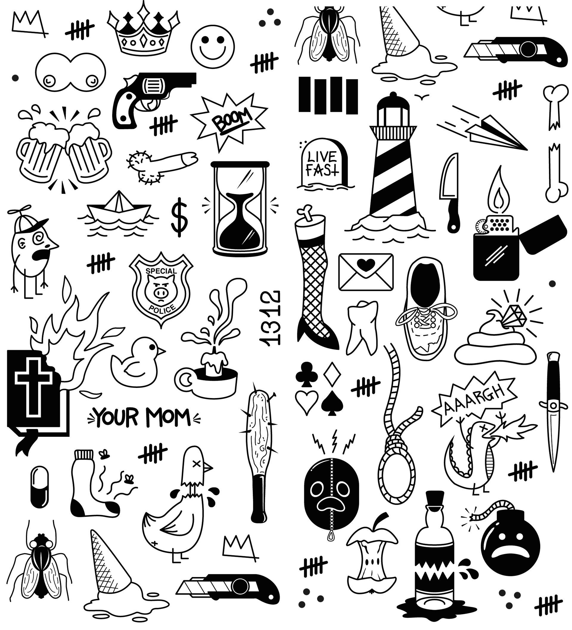 ![Стикеры чёрно белые]()