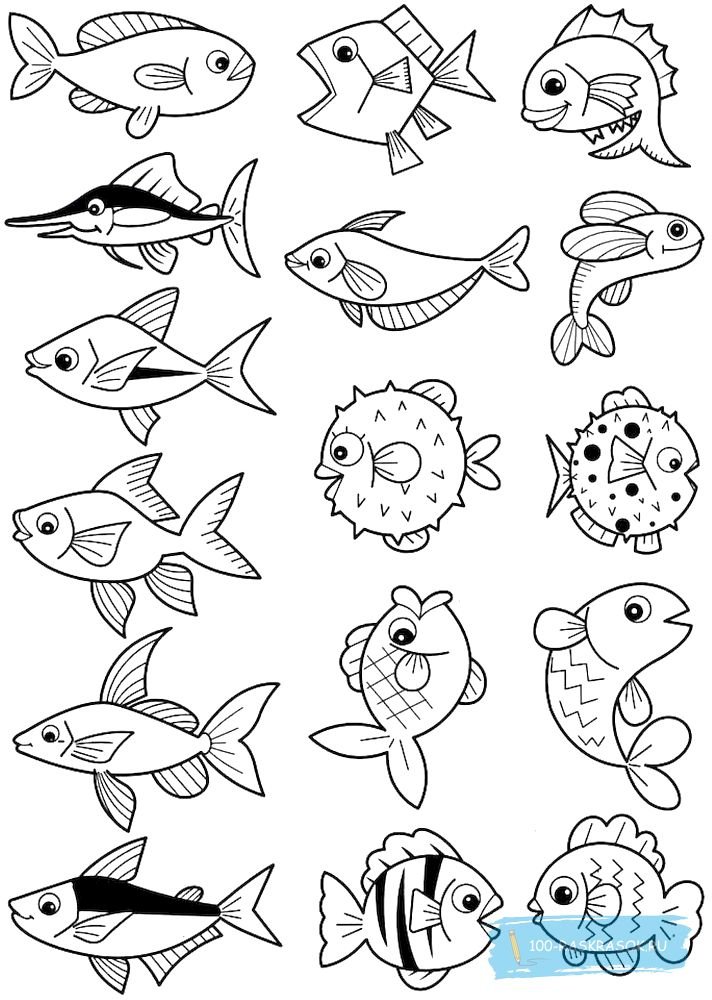 ![Рыбки для раскрашивания детям]()
