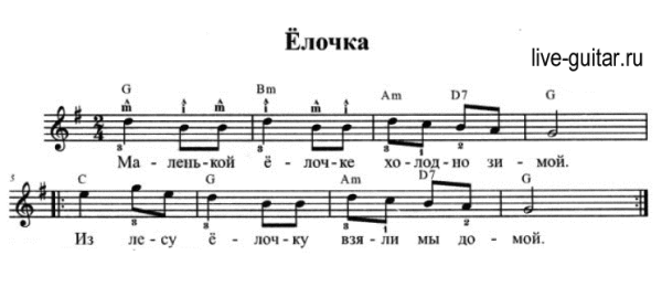 ![Маленькой елочке Ноты для гитары]()