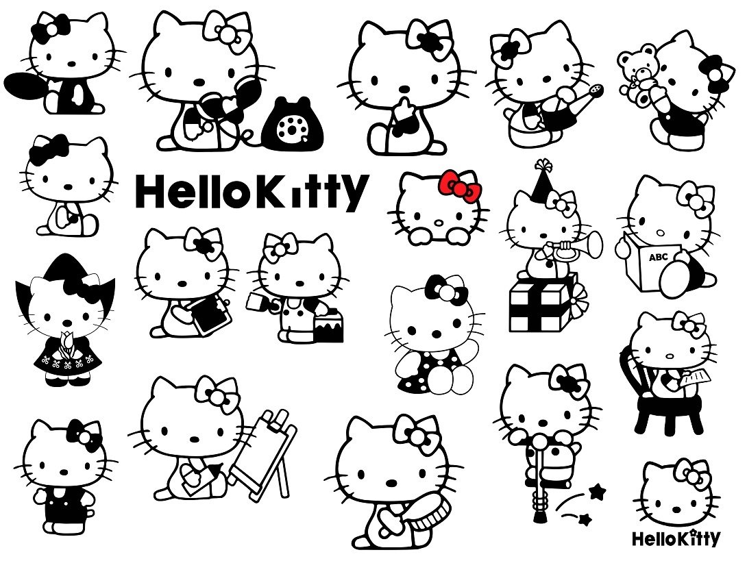 ![Хеллоу Китти раскраска черно белая наклейки]()