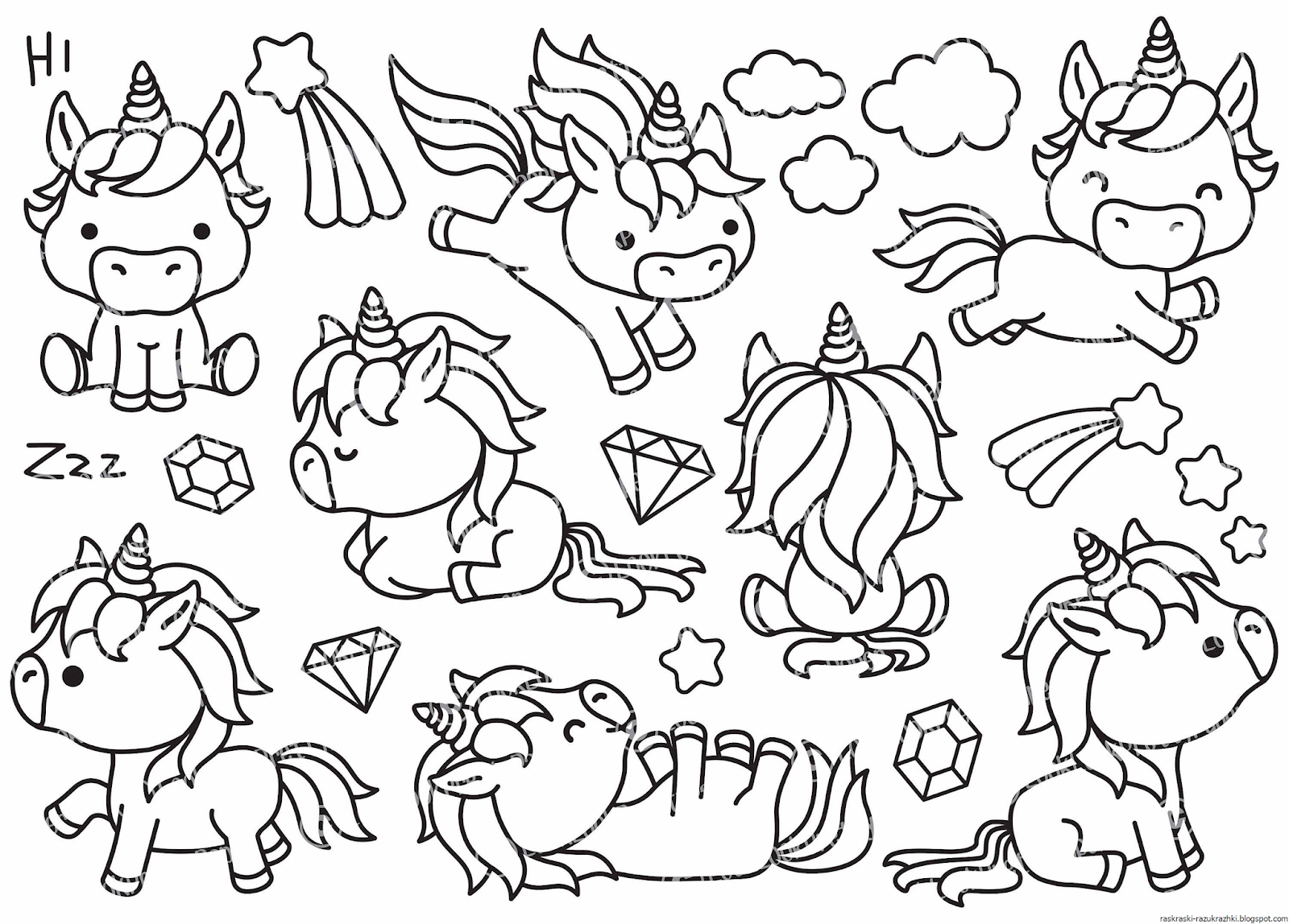 Раскраски Единороги милые