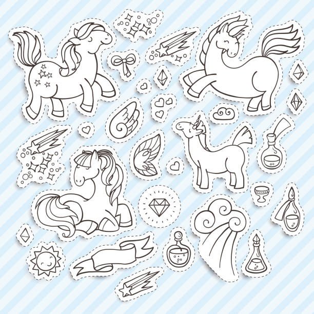 ![Раскраски наклейки Единороги]()