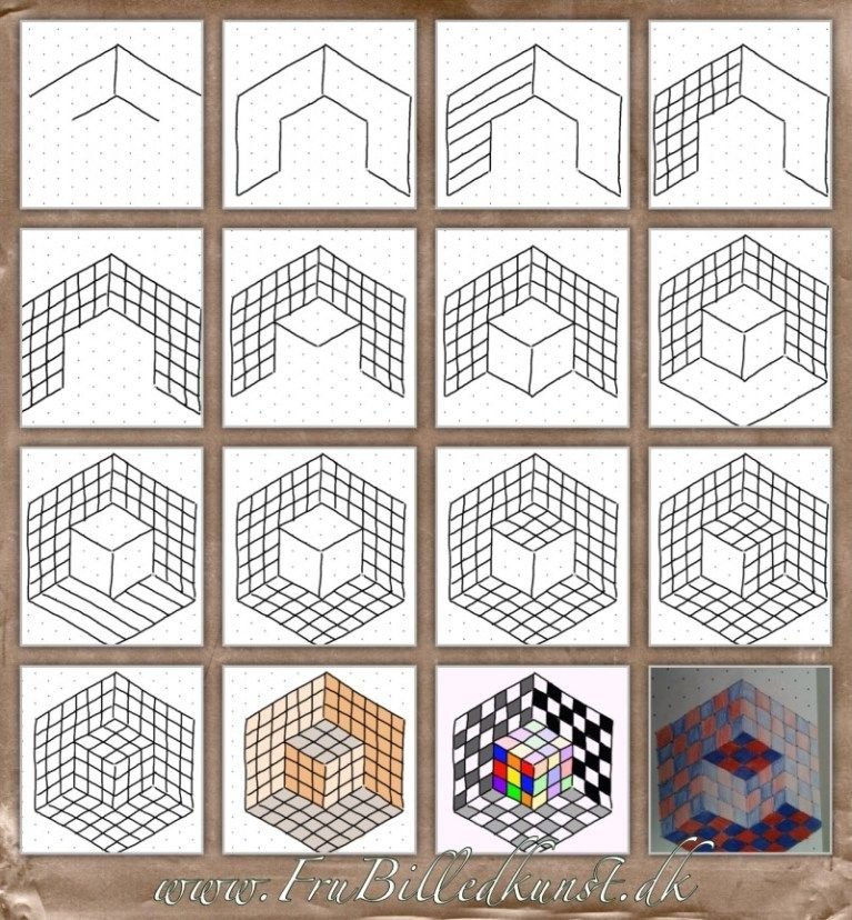 Объемные рисунки в тетради в клетку