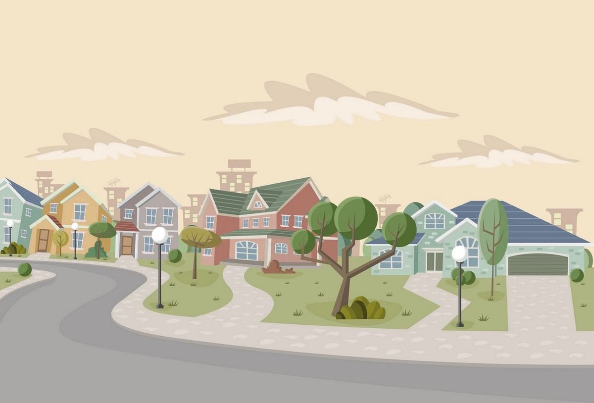 ![Мультяшный дом в городе]()