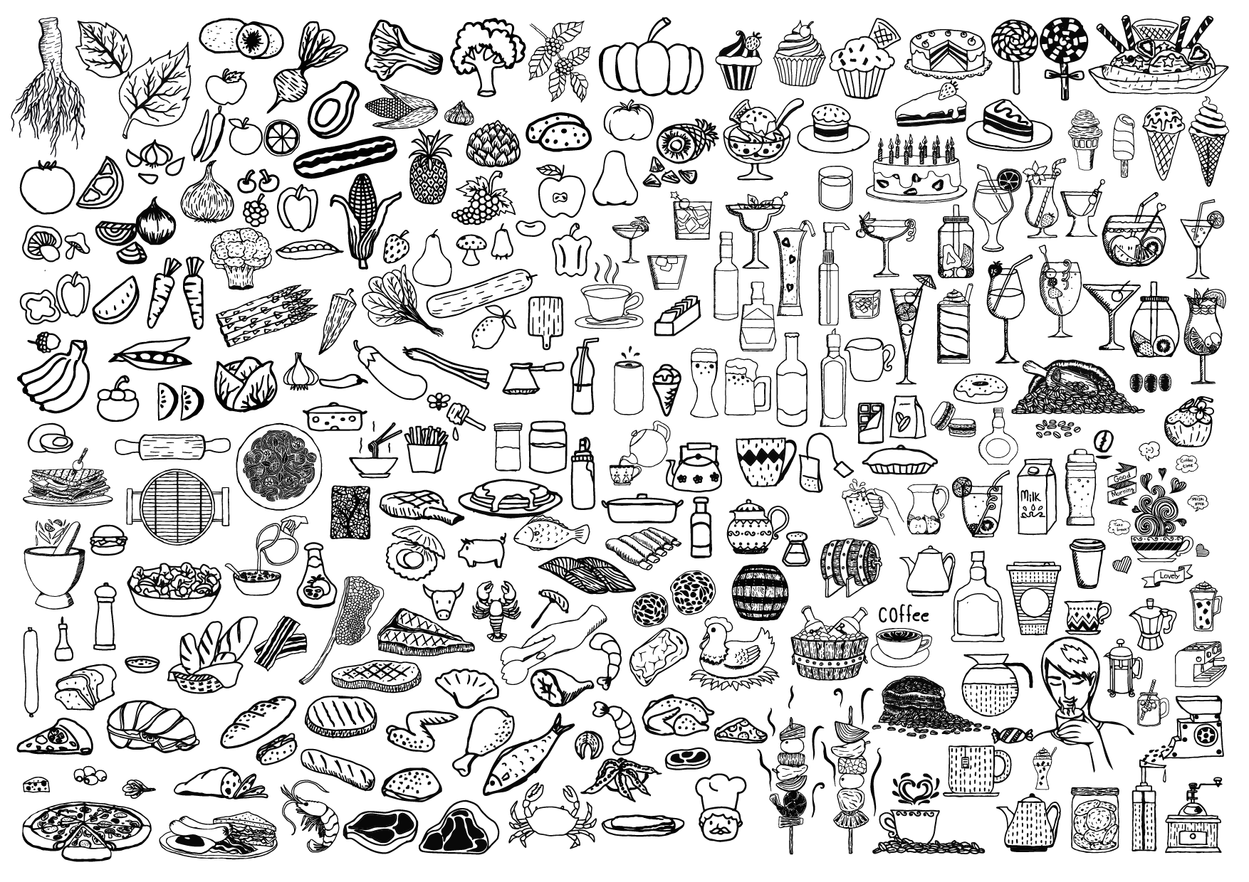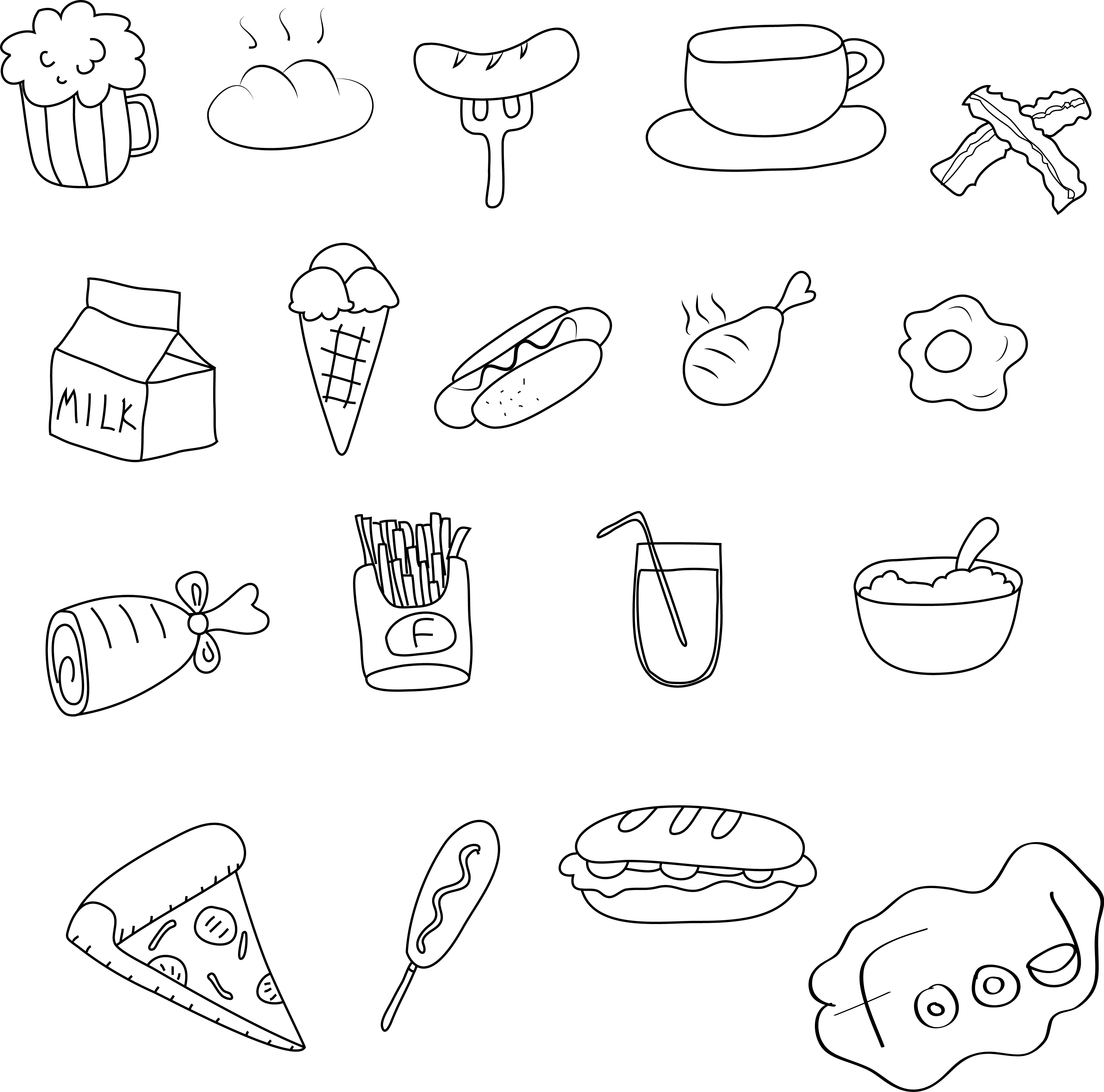 ![Наклейки еда черно белые]()