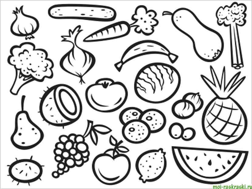 Продукты фрукты раскраска для детей