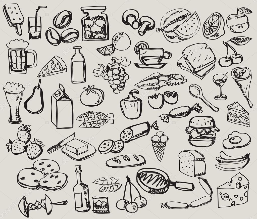 ![Продукты карандашом для срисовки]()
