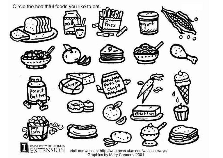 ![Полезные продукты раскраска]()