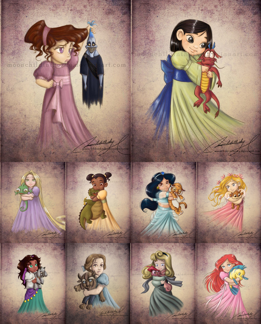 Принцессы Диснея в детстве раскраски