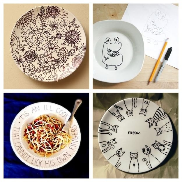 ![Роспись тарелок маркерами]()