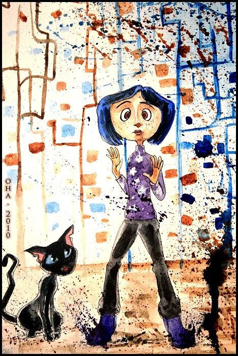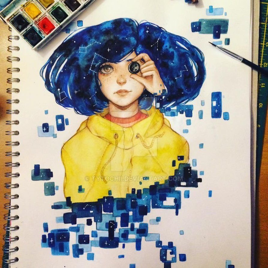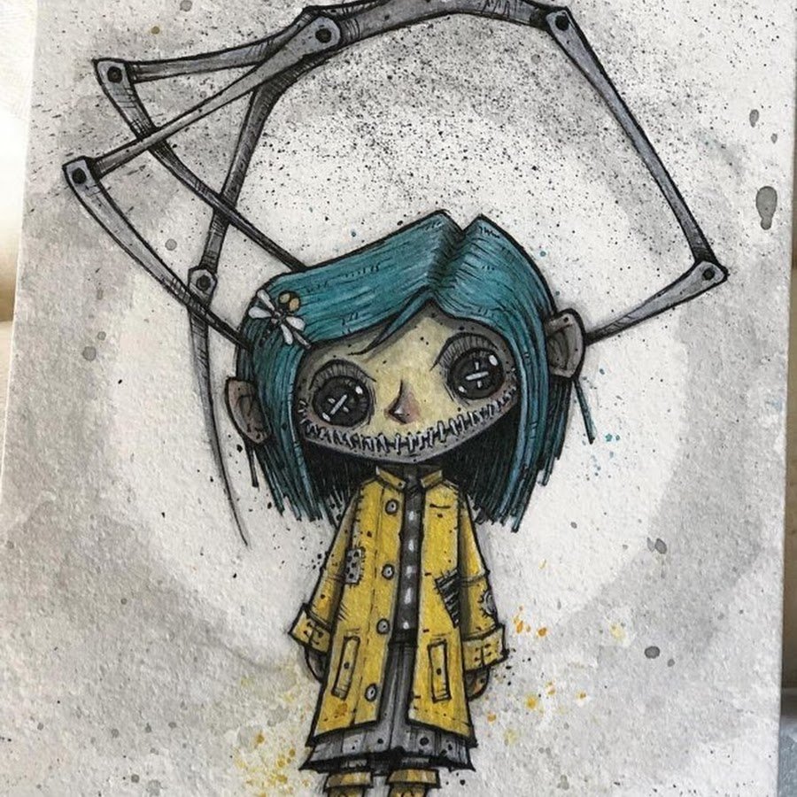 ![Коралина в стране кошмаров арт акварель]()