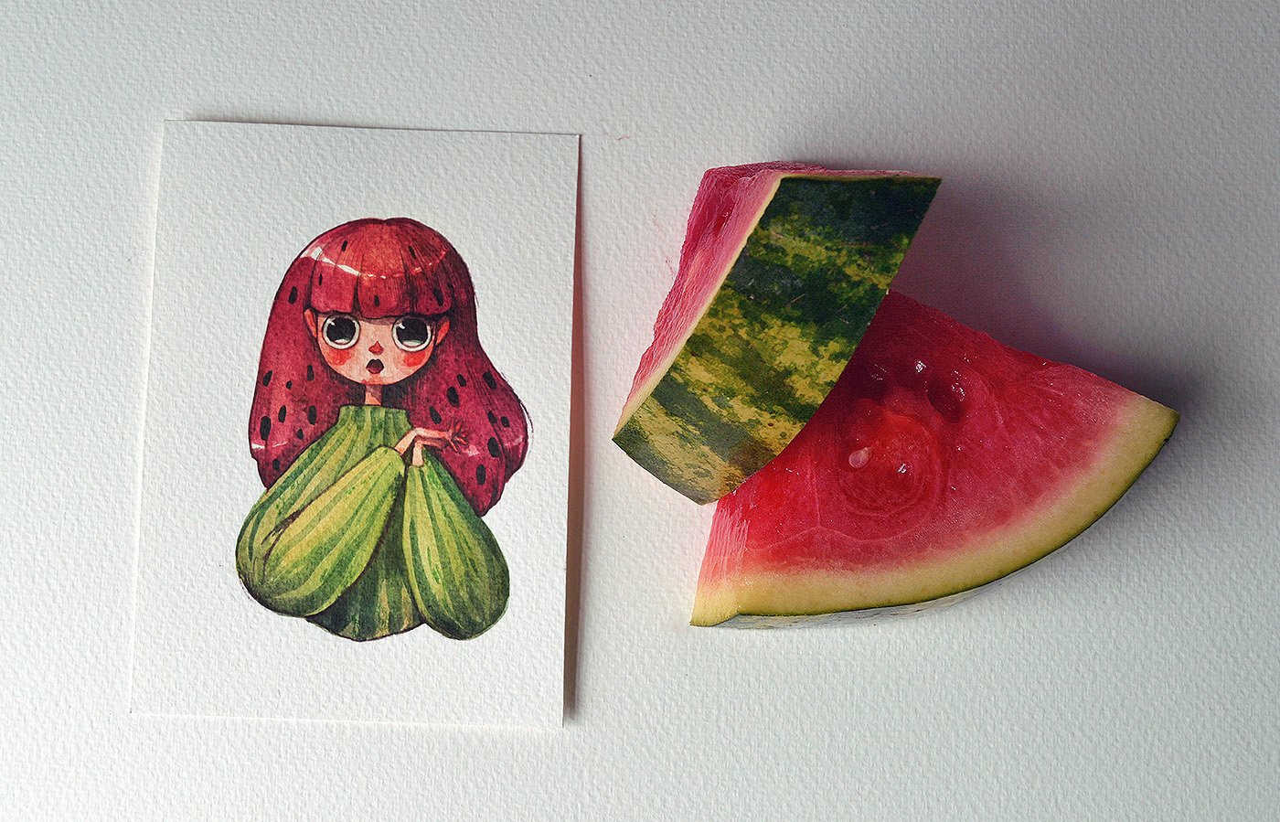 Долька арбуза акварелью