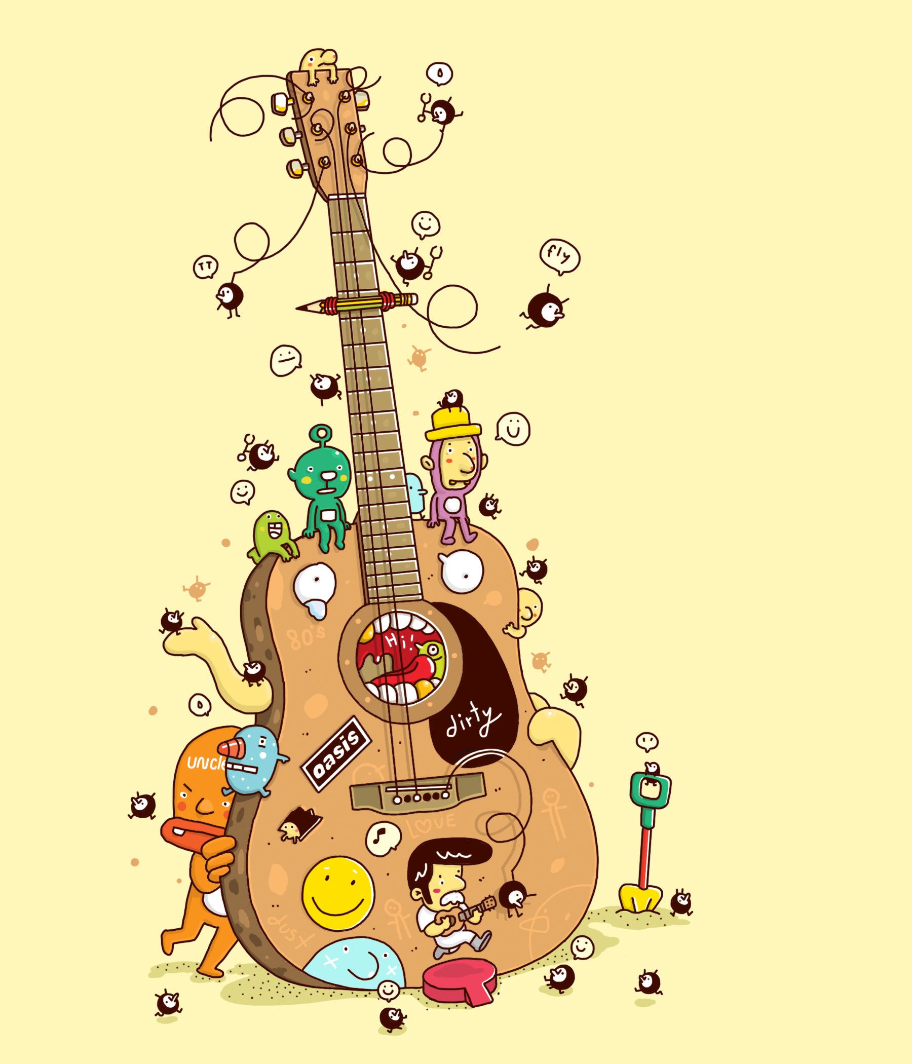 ![Укулеле карандашом]()