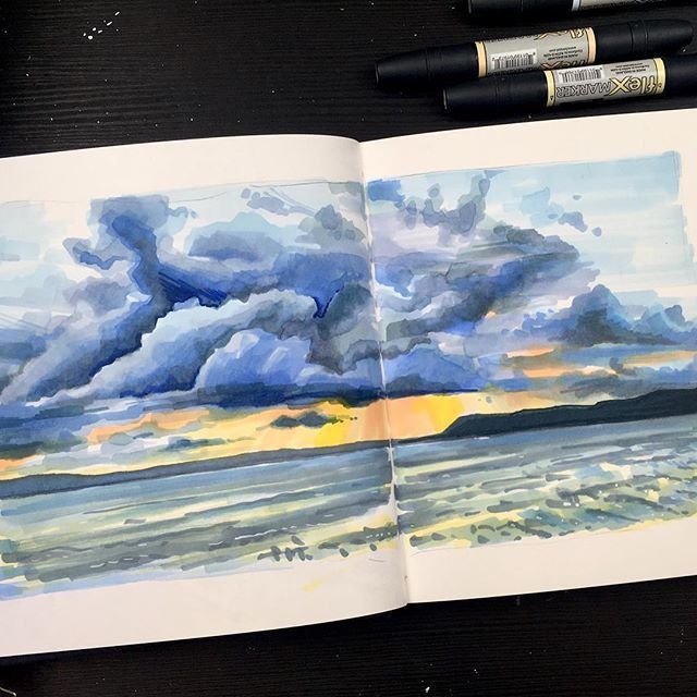 Пейзаж скетч маркерами
