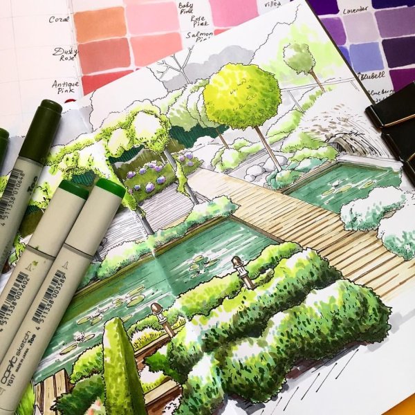 Ландшафтный скетчинг маркерами