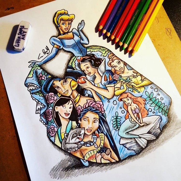 ![Принцессы Диснея в скетчбука маркерами]()