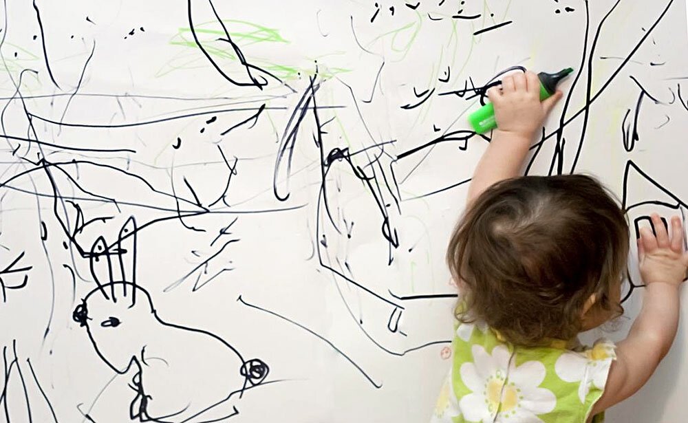 ![Ребенок рисует на стене]()