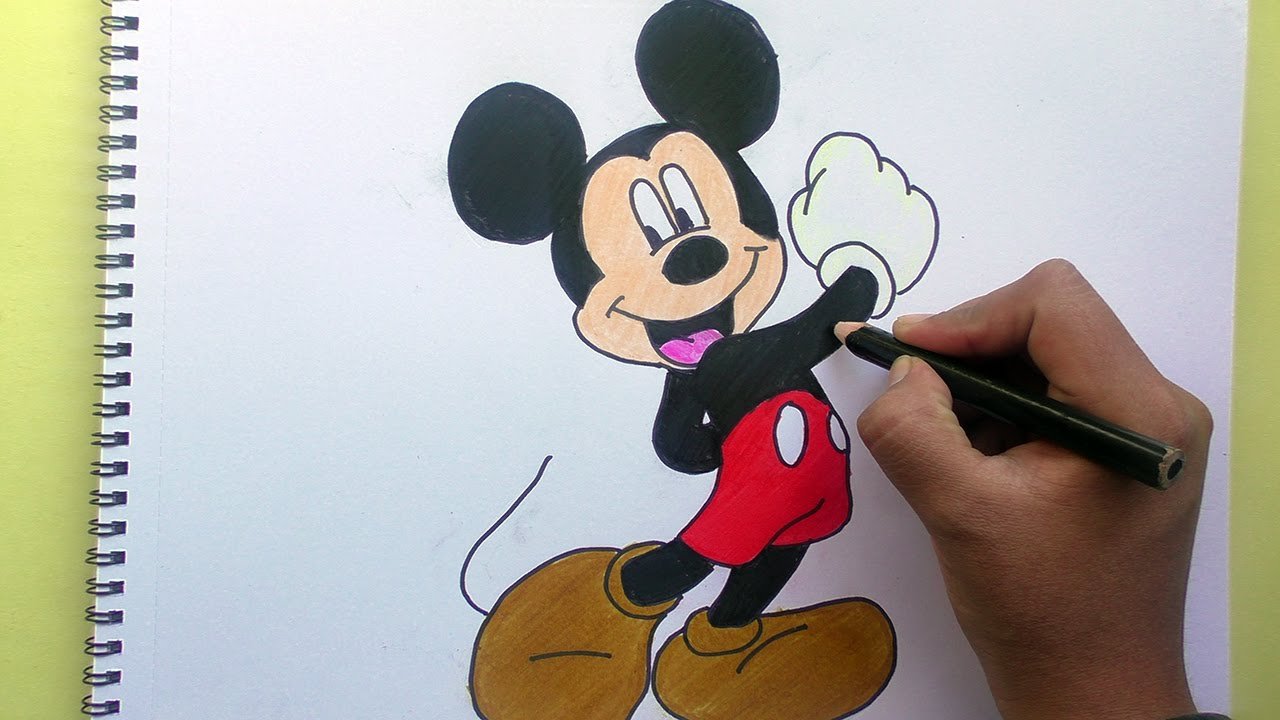 ![Нарисованный Микки Маус цветными карандашами]()