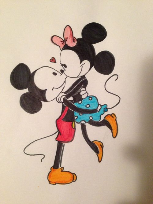 ![Микки и Минни Маус карандашом]()