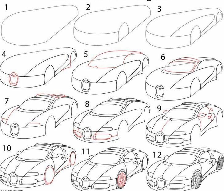![Бугатти Вейрон рисунок карандашом поэтапно]()